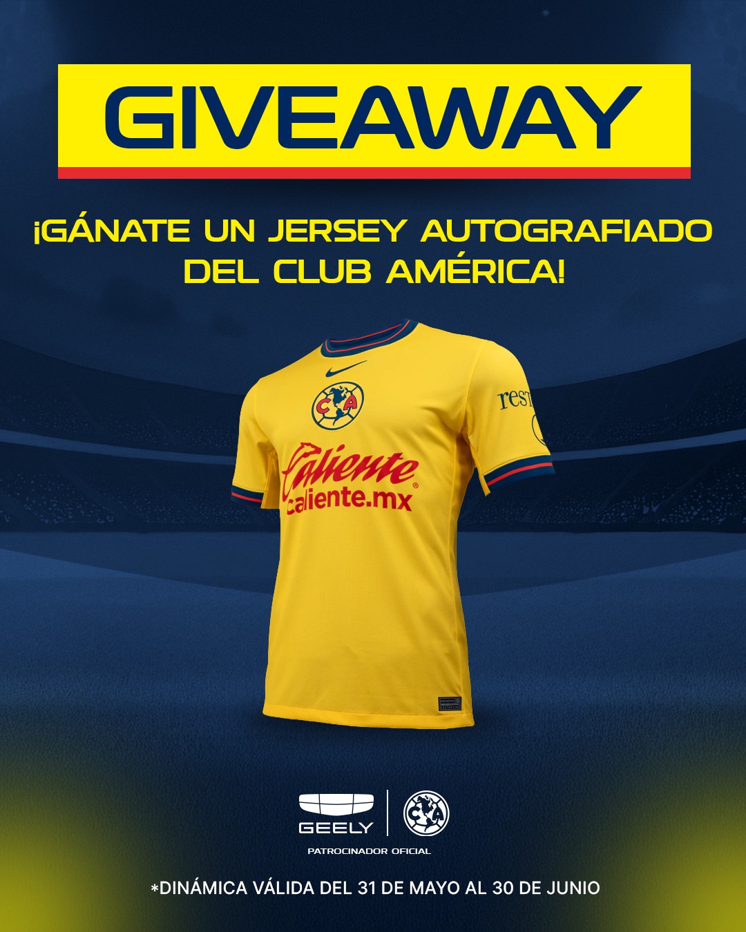 🎁🦅| ¡Gánate un jersey autografiado del Club América! 1️⃣.- Realiza una prueba de manejo en tu distribuidor Geely más cercano del 31 de Mayo al 30 de Junio de 2025. 2️⃣.- Manda tu comprobante de registro para la prueba de manejo al correo: contactomx@geely.com 3️⃣.- Tómate una foto con tu Geely favorito y posa como si estuvieras celebrando un gol. 4️⃣.- Sube tu 📸 a los comentarios y usa el hashtag: #HechosParaGanar TyC: https://bit.ly/43E8OSa Un jurado elegirá a los ¡GANADORES! 🥳👏