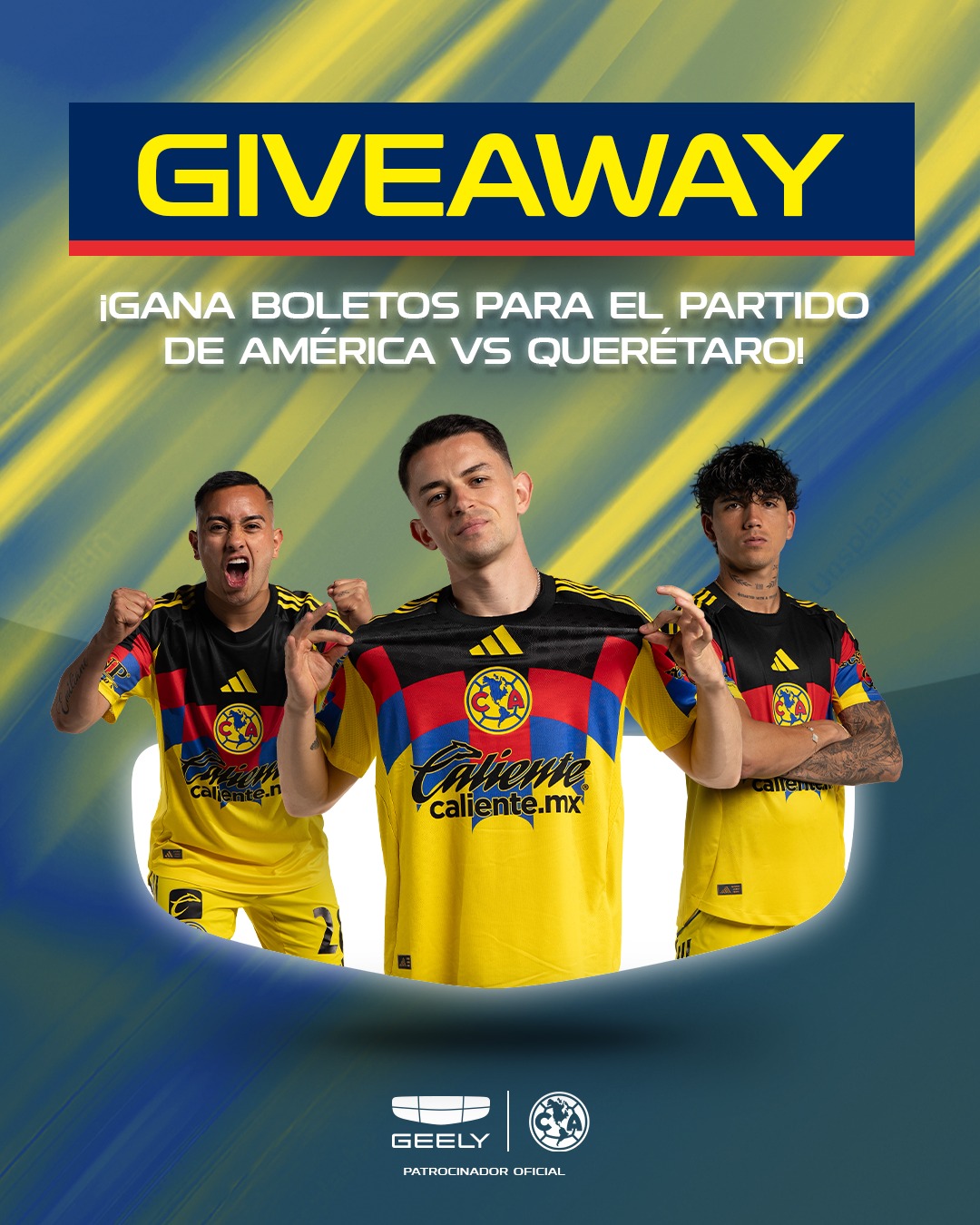 ¡Atención, Azulcremas! 💛💙 ¿Quieren boletos para ir al 🏟 y apoyar al @ClubAmerica 🦅 vs Querétaro? 1️⃣.- Dale ❤️ a la dinámica y sigue a @geelyautomexico⁣ 2️⃣.- Comenta la respuesta correcta⁣ 3️⃣.- Usa el hashtag: #HechosParaGanar⁣ Un jurado elegirá a los ¡GANADORES! 🥳👏⁣Conoce más consultando los T&C en el link de nuestra bio. ⬆️